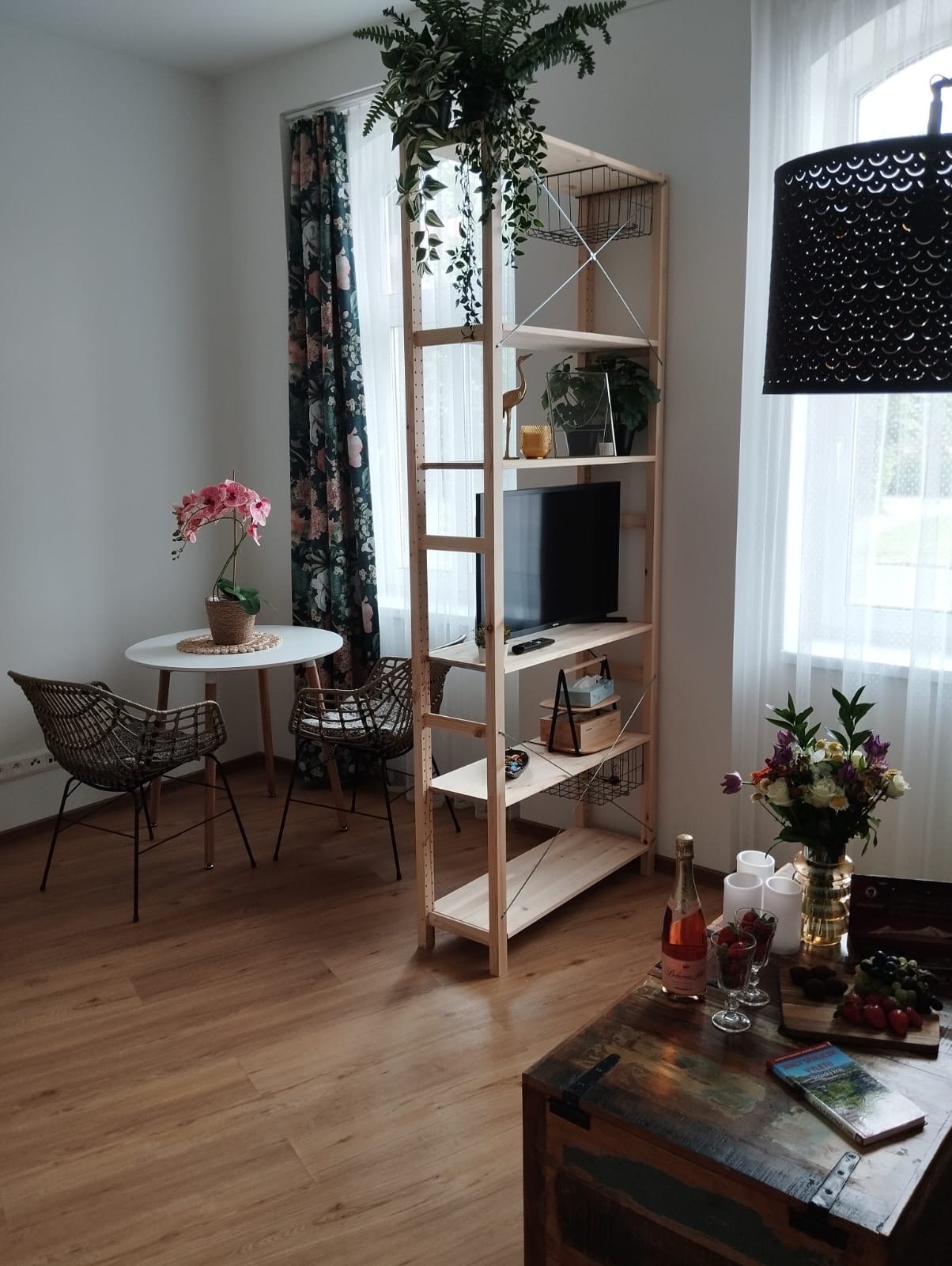 Apartmán s balkonem je plně vybaven pro pohodlný pobyt.